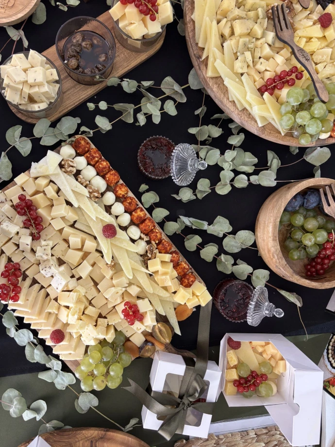 Ne ocupăm cu grijă de aranjarea și decorare. Îmbinăm brânzeturile cu fructe proaspete și accente florale, creând un decor elegant și rafinat, care să impresioneze invitații.